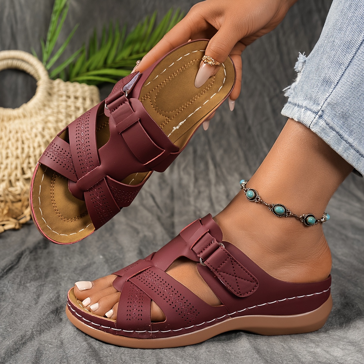 The cushion-like, double-padded memory foam insole is very soft. And the sandal is easy to combine.